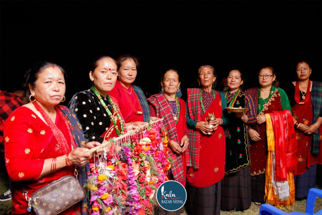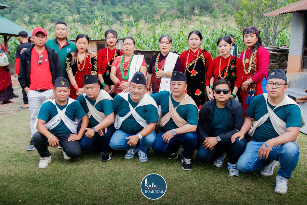 सुटिंग समुहलाई स्वागत गर्न फुलमाला, खादा, अबिर सहित तयार बसेका आमा समूह